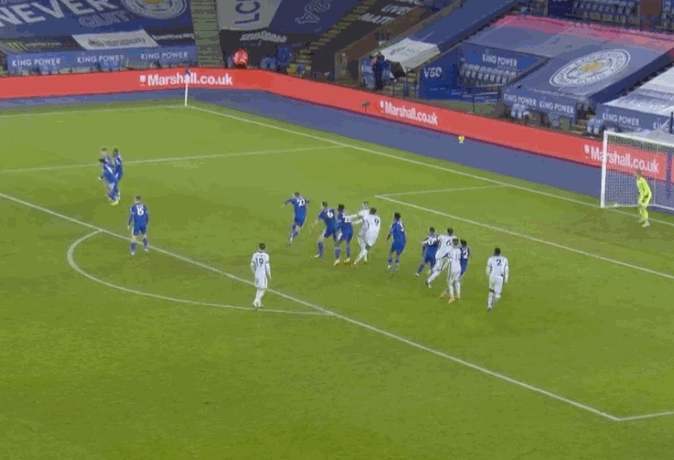 第55分钟,贾斯汀前场左侧横传,巴恩斯拿球回敲,贾斯汀插上顺势将球一推,瓦尔迪直塞,阿尔布莱顿混战中拿球转身推射入网,边裁举旗示意越位在先,进球无效。