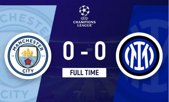 下半场补时4分钟。最终全场比赛结束,曼城0-0国米。