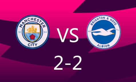 北京时间3月15日23:00,2024-25赛季英超联赛第29轮,曼城坐镇伊蒂哈德球场迎战布莱顿。上半场三笘薫进球因冲撞门将无效,马尔穆什造点,哈兰德点射破门,埃斯图皮尼安任意球扳平,马尔穆什世界波建功,曼城暂2-1布莱顿;下半场胡桑诺夫乌龙,最终曼城2-2布莱顿,英超两轮不胜,先赛1场距前四1分。